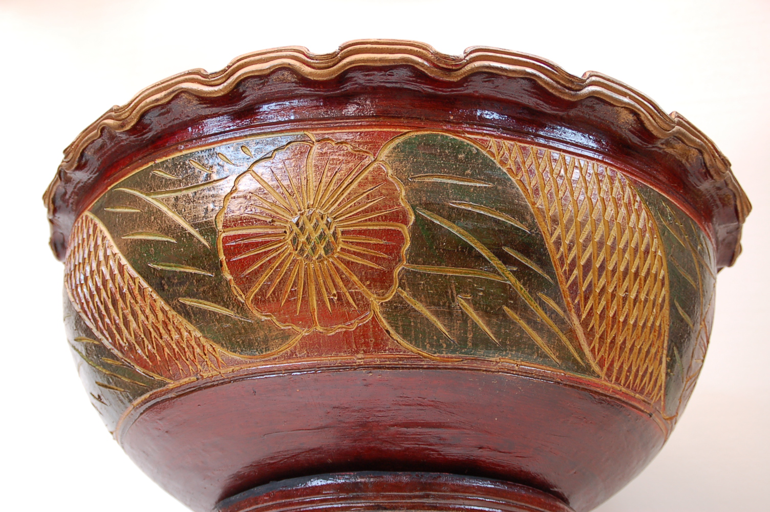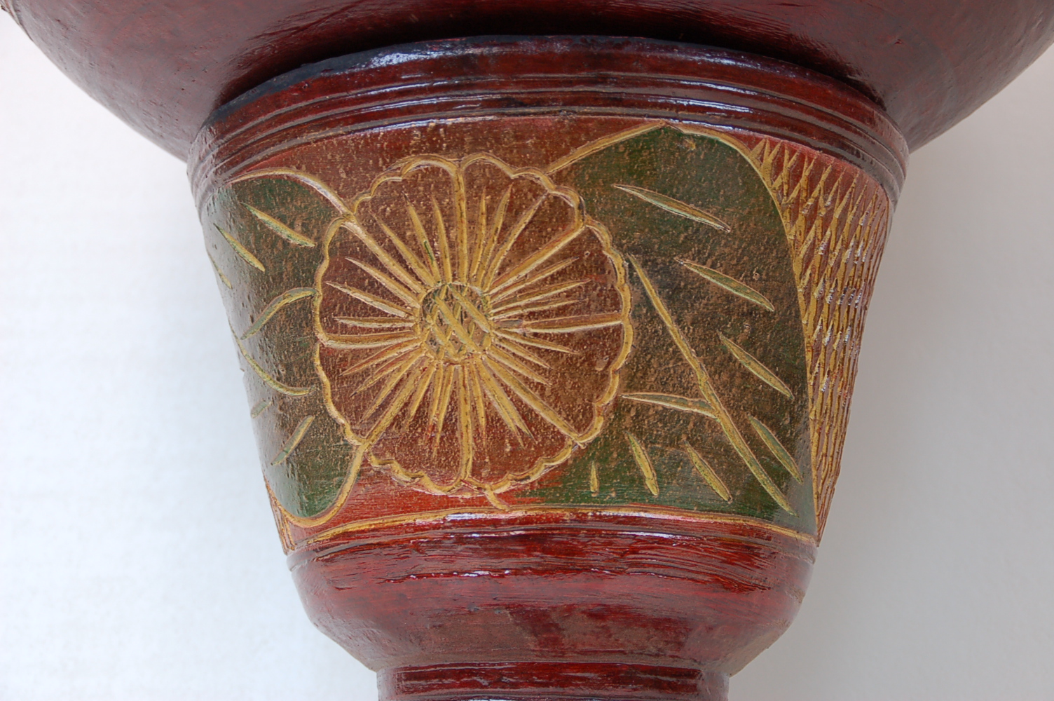 Sie ist sehr massiv und mit einem aufwendigen Muster ausgestattet. Sie ist in Thailand in Handarbeit gefertigt.