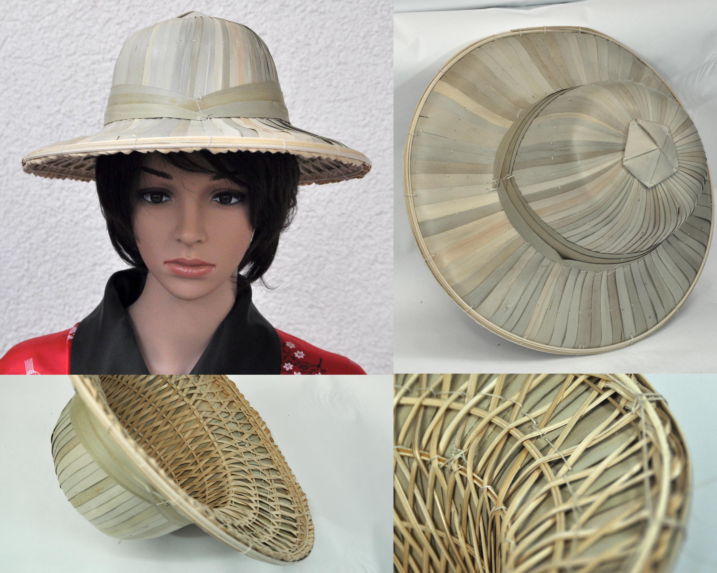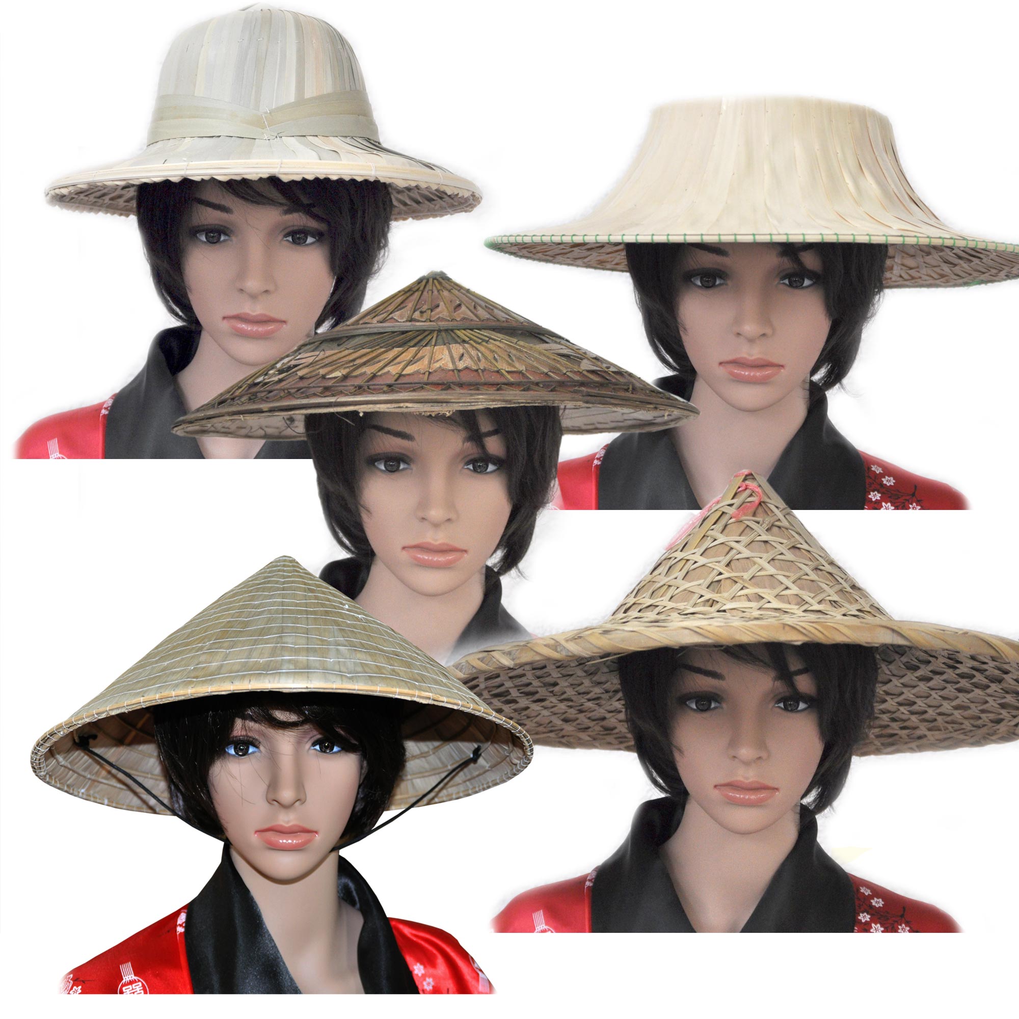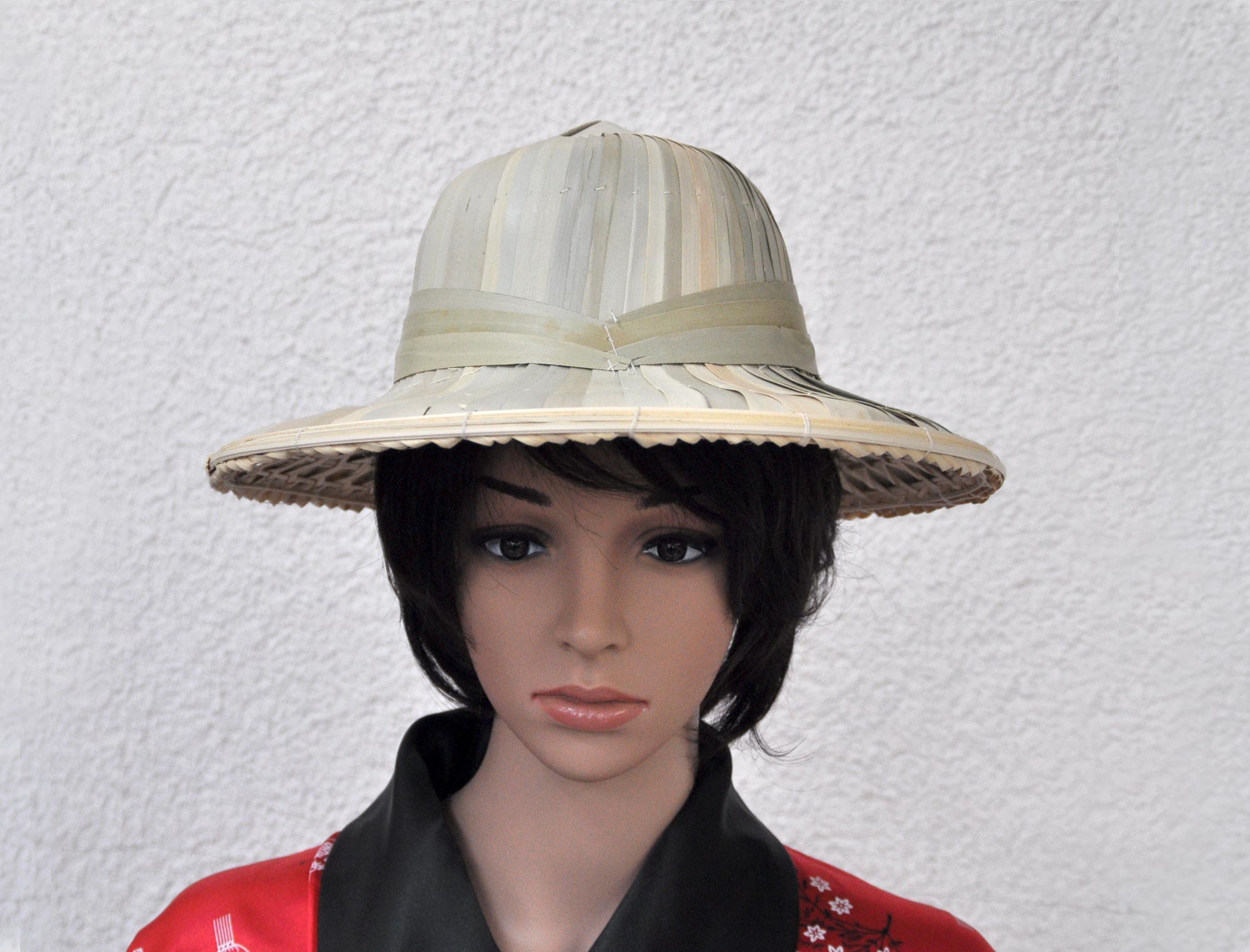 In diesem Angebot können Sie Asiahüte aus Bambus und Stroh erwerben. Die Hüte haben eine Einheitsgröße für Erwachsene. Da Bambus und Stroh Naturmaterialien sind und die Hüte in echter Handarbeit hergestellt wird, können Farbe und Verarbeitung leicht variieren.