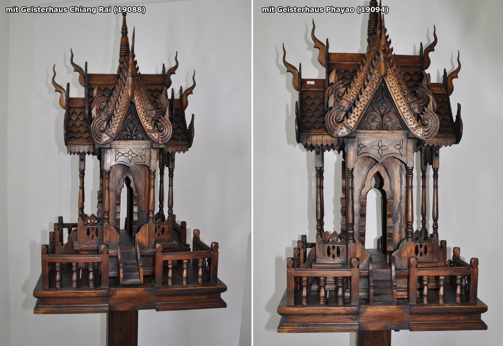 Stellen Sie sich vor, wie das Geisterhaus "Phayao" Ihrem Garten oder Wohnbereich eine Atmosphäre von Ruhe, Frieden und kultureller Exotik verleiht. Es ist mehr als nur ein dekoratives Element – es ist ein Symbol für spirituelle Harmonie und Schutz.