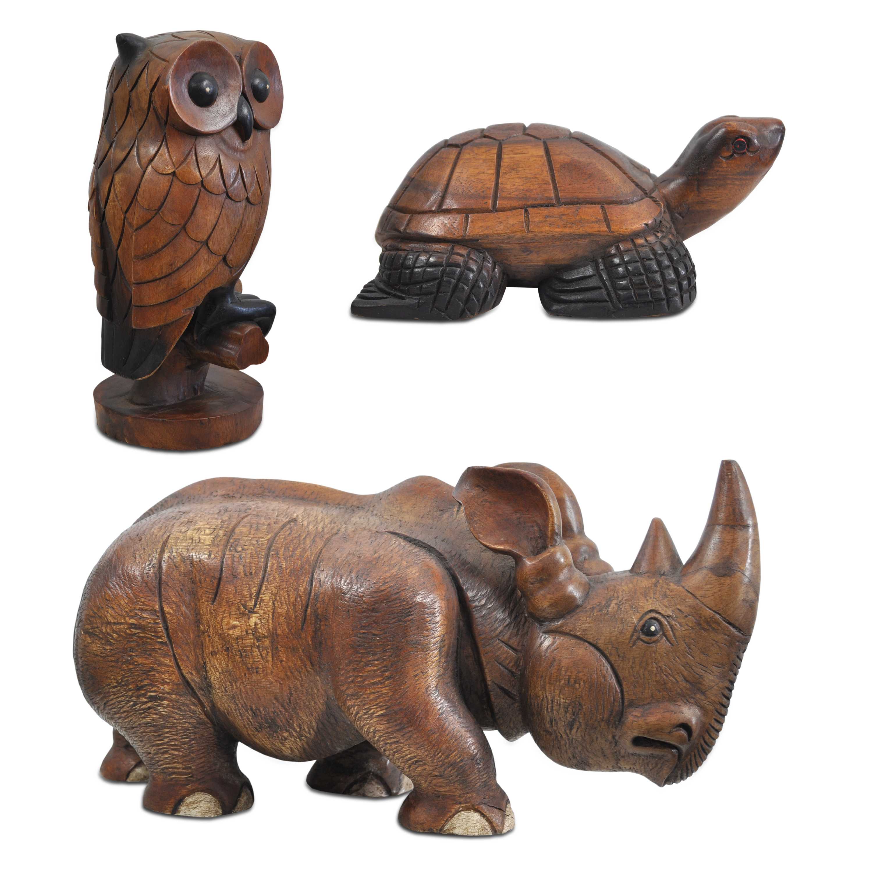 Produktinformationen "Tierfigur Schildkröte Nashorn Eule Echtholz Handarbeit geschnitzt Unikat"